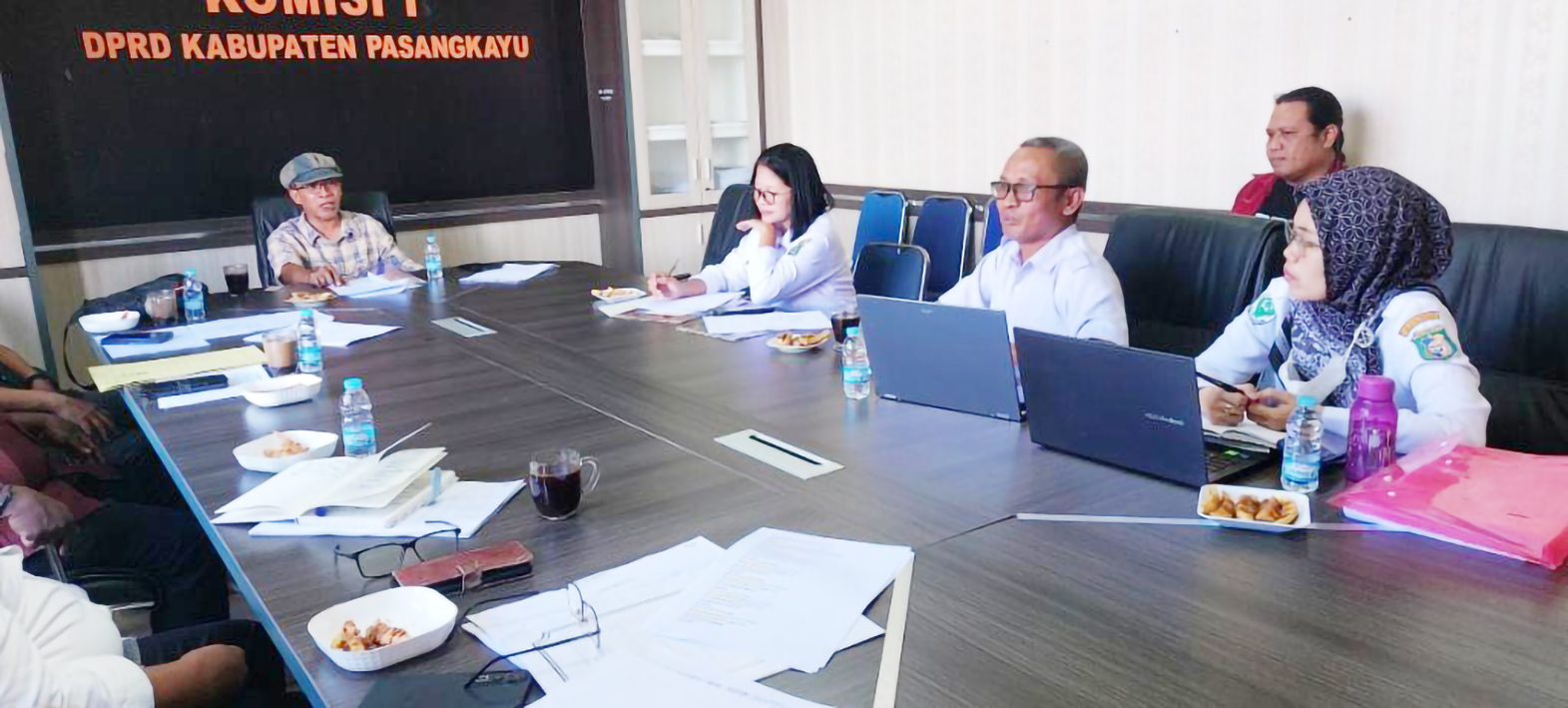 Wakil Ketua Komisi I, Arham Bustaman didampingi anggota lainnya, Andrias dan Muh. Ilham saat melakukan rapat kerja (raker) dengan dua OPD di bidang kesehatan, Dinas Kesehatan dan RSUD Pasangkayu